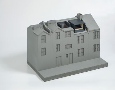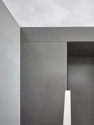 The flatness of the existing rear elevation was a defining feature, and so we allowed the new roof addition to sit delicately as an element on the roof. A thin steel reveal provides a lining to the new space, focussing views out from inside.