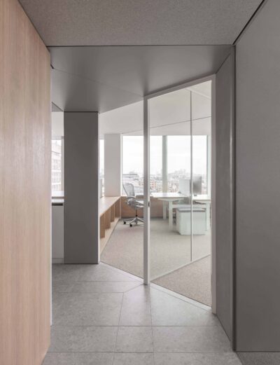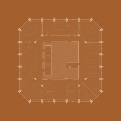 Based on the client’s desire for an updated open plan office space balanced with appreciation of the historic layout, we aimed to maintain both internal openness and dynamic views to the surrounding city, whilst retaining and celebrating the original octagonal layout.