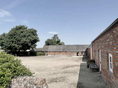 Entrance to the farm leads to a formal courtyard enveloped by traditional red brick and timber clad buildings with slate/clay tiles roofs giving this part of the farm a character of solidity with only glimpses through small gaps to the farmyard and land beyond. The courtyard gives access to several storage buildings, a tithe barn, the farm office, stables and is overlooked by the farmhouse.